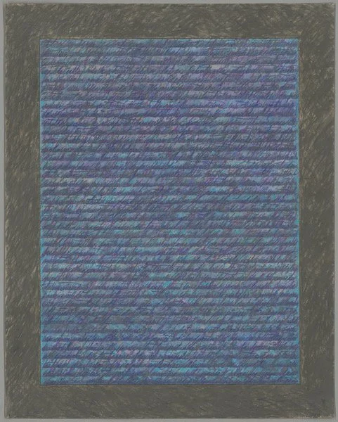 Blue Written Over, 1976, Colored Pencil on Archival Paper, 24" x 19”(60.96 x 48.26 cm)